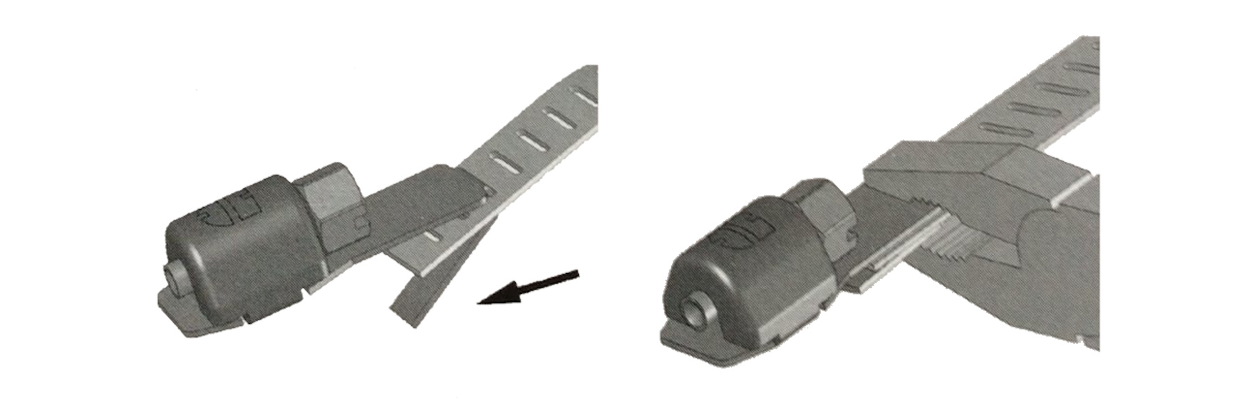 - Закріпіть ніжку замка за допомогою плоскогубців та стягуйте стрічку за допомогою гвинта в замку